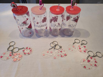Inclus (Selon l’option choisi) : Verre à personnaliser, porte-clé, vinyle permanent selon le motif choisi (fleurs, melon d’eau ou sur mesure), spatules d’application, papier transfert et guide d’utilisation.